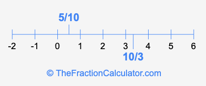 We'll start by presenting the illustration below that shows you where 5/10 and 10/3 are positioned on a number line. This will help you fully understand and visualize our calculations.
