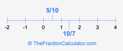 We'll start by presenting the illustration below that shows you where 5/10 and 10/7 are positioned on a number line. This will help you fully understand and visualize our calculations.