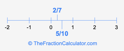 We'll start by presenting the illustration below that shows you where 5/10 and 2/7 are positioned on a number line. This will help you fully understand and visualize our calculations.