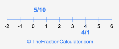 We'll start by presenting the illustration below that shows you where 5/10 and 4/1 are positioned on a number line. This will help you fully understand and visualize our calculations.