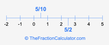 We'll start by presenting the illustration below that shows you where 5/10 and 5/2 are positioned on a number line. This will help you fully understand and visualize our calculations.