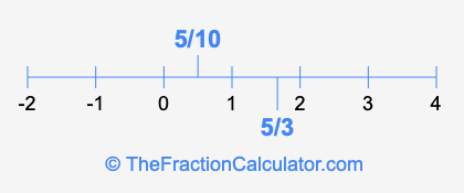 We'll start by presenting the illustration below that shows you where 5/10 and 5/3 are positioned on a number line. This will help you fully understand and visualize our calculations.