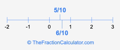 We'll start by presenting the illustration below that shows you where 5/10 and 6/10 are positioned on a number line. This will help you fully understand and visualize our calculations.