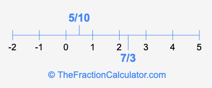 We'll start by presenting the illustration below that shows you where 5/10 and 7/3 are positioned on a number line. This will help you fully understand and visualize our calculations.