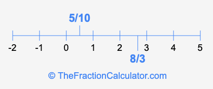 We'll start by presenting the illustration below that shows you where 5/10 and 8/3 are positioned on a number line. This will help you fully understand and visualize our calculations.