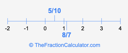 We'll start by presenting the illustration below that shows you where 5/10 and 8/7 are positioned on a number line. This will help you fully understand and visualize our calculations.