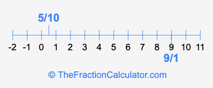 We'll start by presenting the illustration below that shows you where 5/10 and 9/1 are positioned on a number line. This will help you fully understand and visualize our calculations.