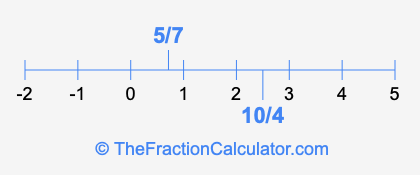 We'll start by presenting the illustration below that shows you where 5/7 and 10/4 are positioned on a number line. This will help you fully understand and visualize our calculations.