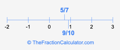 We'll start by presenting the illustration below that shows you where 5/7 and 9/10 are positioned on a number line. This will help you fully understand and visualize our calculations.