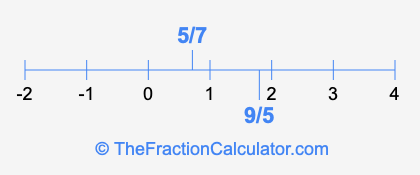 We'll start by presenting the illustration below that shows you where 5/7 and 9/5 are positioned on a number line. This will help you fully understand and visualize our calculations.
