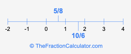 We'll start by presenting the illustration below that shows you where 5/8 and 10/6 are positioned on a number line. This will help you fully understand and visualize our calculations.