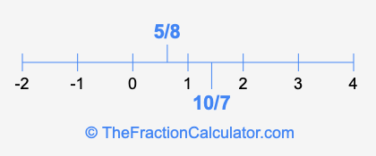 We'll start by presenting the illustration below that shows you where 5/8 and 10/7 are positioned on a number line. This will help you fully understand and visualize our calculations.
