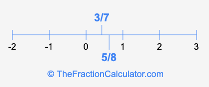 We'll start by presenting the illustration below that shows you where 5/8 and 3/7 are positioned on a number line. This will help you fully understand and visualize our calculations.