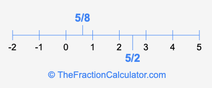 We'll start by presenting the illustration below that shows you where 5/8 and 5/2 are positioned on a number line. This will help you fully understand and visualize our calculations.