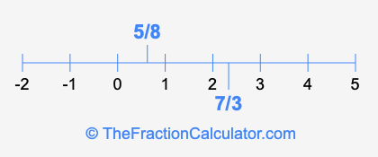 We'll start by presenting the illustration below that shows you where 5/8 and 7/3 are positioned on a number line. This will help you fully understand and visualize our calculations.