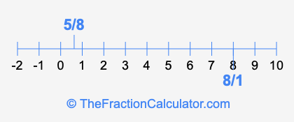 We'll start by presenting the illustration below that shows you where 5/8 and 8/1 are positioned on a number line. This will help you fully understand and visualize our calculations.