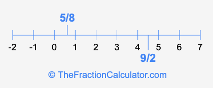 We'll start by presenting the illustration below that shows you where 5/8 and 9/2 are positioned on a number line. This will help you fully understand and visualize our calculations.