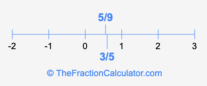 We'll start by presenting the illustration below that shows you where 5/9 and 3/5 are positioned on a number line. This will help you fully understand and visualize our calculations.