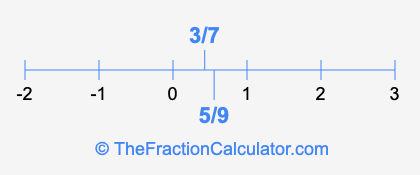 We'll start by presenting the illustration below that shows you where 5/9 and 3/7 are positioned on a number line. This will help you fully understand and visualize our calculations.