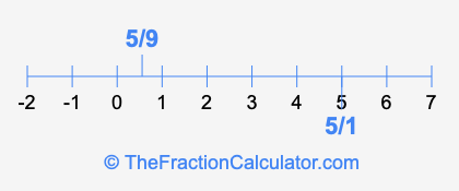 We'll start by presenting the illustration below that shows you where 5/9 and 5/1 are positioned on a number line. This will help you fully understand and visualize our calculations.