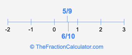 We'll start by presenting the illustration below that shows you where 5/9 and 6/10 are positioned on a number line. This will help you fully understand and visualize our calculations.