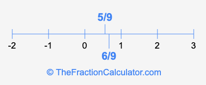 We'll start by presenting the illustration below that shows you where 5/9 and 6/9 are positioned on a number line. This will help you fully understand and visualize our calculations.