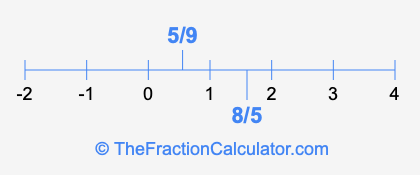 We'll start by presenting the illustration below that shows you where 5/9 and 8/5 are positioned on a number line. This will help you fully understand and visualize our calculations.