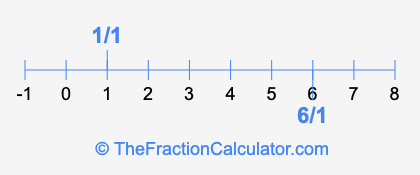 We'll start by presenting the illustration below that shows you where 6/1 and 1/1 are positioned on a number line. This will help you fully understand and visualize our calculations.