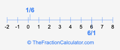 We'll start by presenting the illustration below that shows you where 6/1 and 1/6 are positioned on a number line. This will help you fully understand and visualize our calculations.