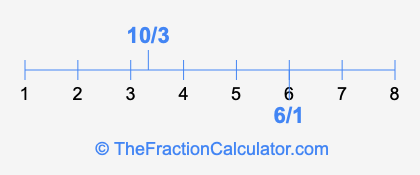 We'll start by presenting the illustration below that shows you where 6/1 and 10/3 are positioned on a number line. This will help you fully understand and visualize our calculations.