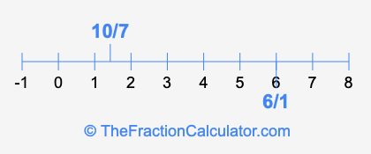We'll start by presenting the illustration below that shows you where 6/1 and 10/7 are positioned on a number line. This will help you fully understand and visualize our calculations.