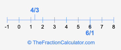 We'll start by presenting the illustration below that shows you where 6/1 and 4/3 are positioned on a number line. This will help you fully understand and visualize our calculations.