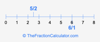 We'll start by presenting the illustration below that shows you where 6/1 and 5/2 are positioned on a number line. This will help you fully understand and visualize our calculations.