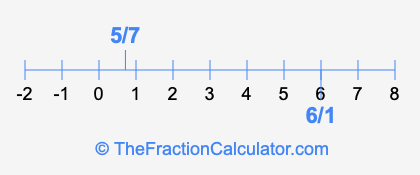 We'll start by presenting the illustration below that shows you where 6/1 and 5/7 are positioned on a number line. This will help you fully understand and visualize our calculations.