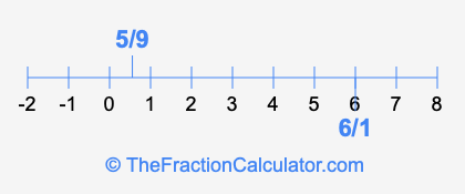 We'll start by presenting the illustration below that shows you where 6/1 and 5/9 are positioned on a number line. This will help you fully understand and visualize our calculations.