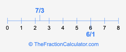 We'll start by presenting the illustration below that shows you where 6/1 and 7/3 are positioned on a number line. This will help you fully understand and visualize our calculations.