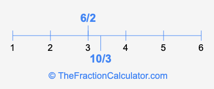 We'll start by presenting the illustration below that shows you where 6/2 and 10/3 are positioned on a number line. This will help you fully understand and visualize our calculations.