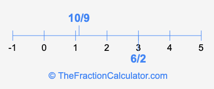 We'll start by presenting the illustration below that shows you where 6/2 and 10/9 are positioned on a number line. This will help you fully understand and visualize our calculations.