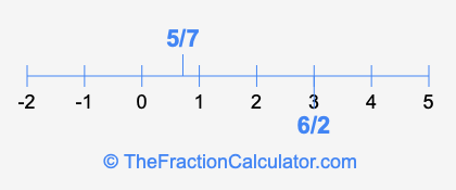 We'll start by presenting the illustration below that shows you where 6/2 and 5/7 are positioned on a number line. This will help you fully understand and visualize our calculations.