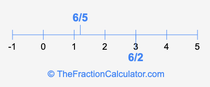 We'll start by presenting the illustration below that shows you where 6/2 and 6/5 are positioned on a number line. This will help you fully understand and visualize our calculations.