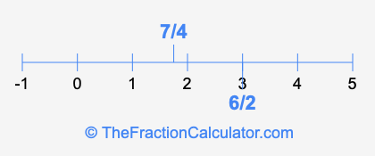 We'll start by presenting the illustration below that shows you where 6/2 and 7/4 are positioned on a number line. This will help you fully understand and visualize our calculations.