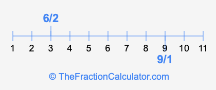 We'll start by presenting the illustration below that shows you where 6/2 and 9/1 are positioned on a number line. This will help you fully understand and visualize our calculations.