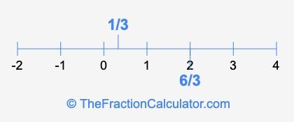 We'll start by presenting the illustration below that shows you where 6/3 and 1/3 are positioned on a number line. This will help you fully understand and visualize our calculations.