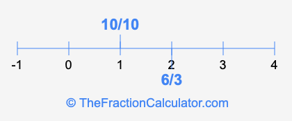 We'll start by presenting the illustration below that shows you where 6/3 and 10/10 are positioned on a number line. This will help you fully understand and visualize our calculations.