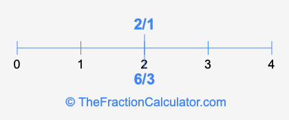 We'll start by presenting the illustration below that shows you where 6/3 and 2/1 are positioned on a number line. This will help you fully understand and visualize our calculations.
