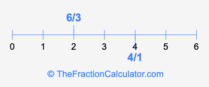 We'll start by presenting the illustration below that shows you where 6/3 and 4/1 are positioned on a number line. This will help you fully understand and visualize our calculations.