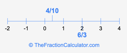 We'll start by presenting the illustration below that shows you where 6/3 and 4/10 are positioned on a number line. This will help you fully understand and visualize our calculations.