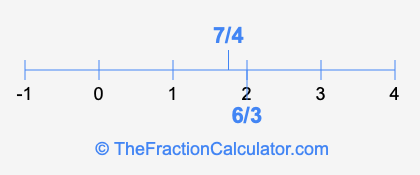 We'll start by presenting the illustration below that shows you where 6/3 and 7/4 are positioned on a number line. This will help you fully understand and visualize our calculations.
