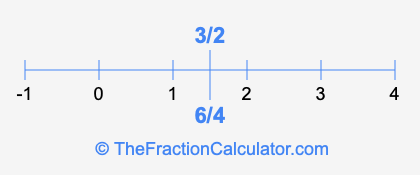 We'll start by presenting the illustration below that shows you where 6/4 and 3/2 are positioned on a number line. This will help you fully understand and visualize our calculations.