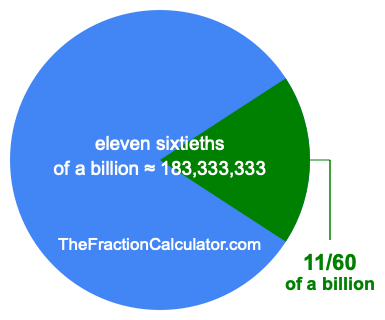 Therefore, 11/60 of a billion is the quotient of one billion divided by 60, multiplied by 11. Here is the math and the answer: